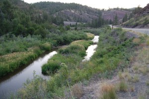 Heading north on I-15 take the Spring Creek Exit to the recreation road. The sign at the exit says no return to I-15 north. Silly sign, the on ramp is at Wolf Creek a few miles up the road. These pictures are of Prickly Pear Creek, less than a mile up the road. In the photo that looks like two streams, the left one is a beaver pond. I spied the local construction team with this years young a few times while I was here.